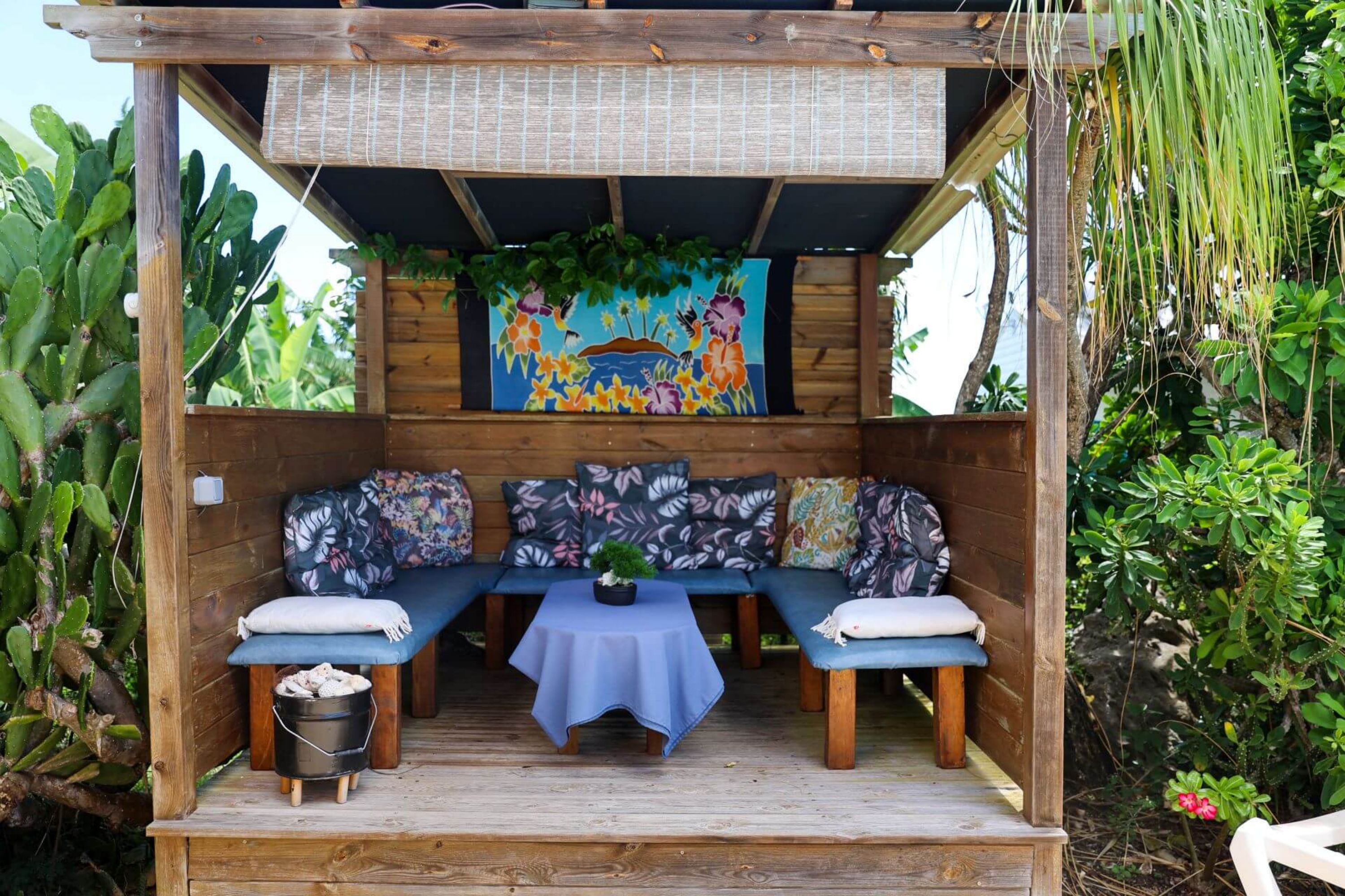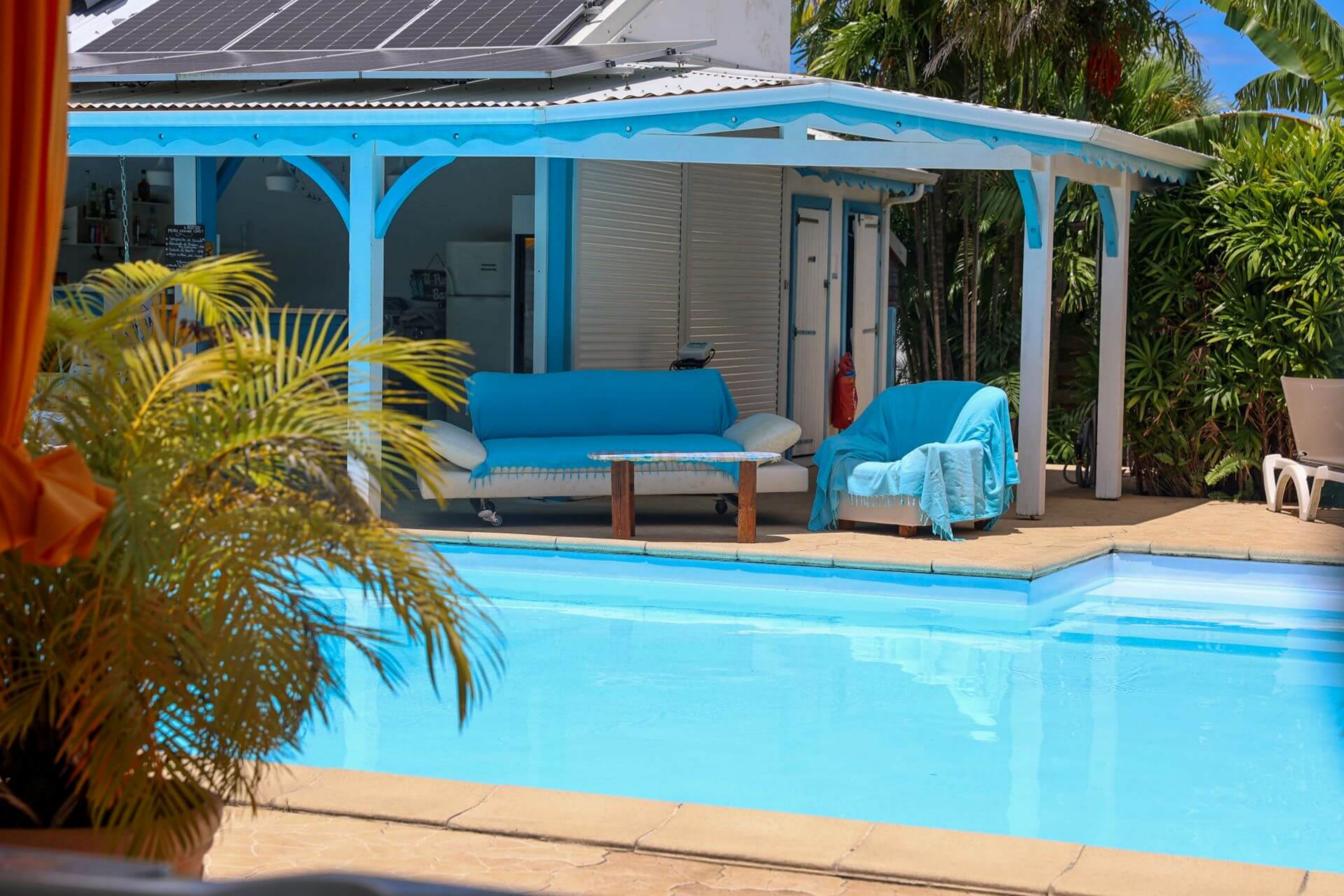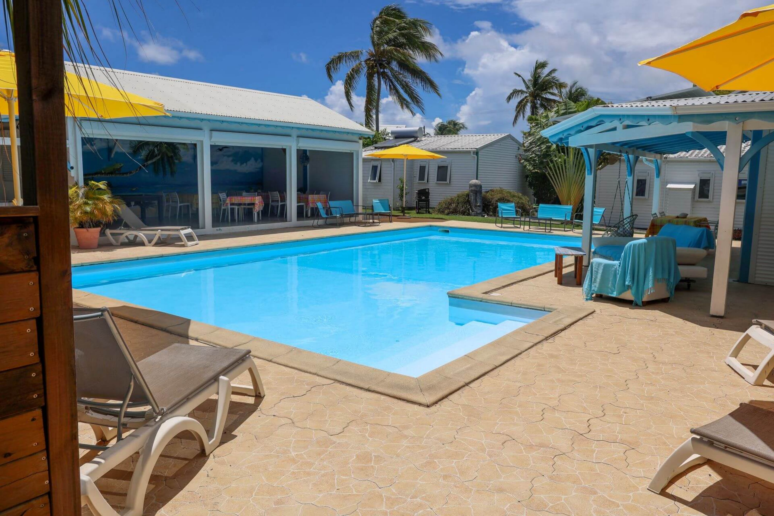 Côté extérieur, chaque hébergement dispose d'une terrasse et d'un jardin avec barbecue et mobilier, au milieu de plants et d'arbres exotiques dans une ambiance créole. A disposition des résidents : salle de jeux, piscine privée, terrain de pétanque.