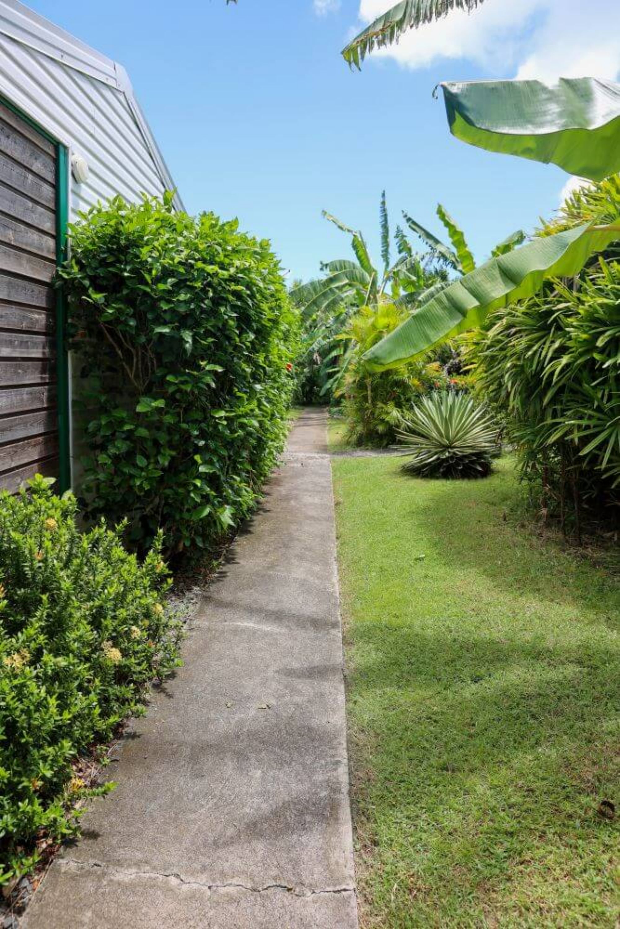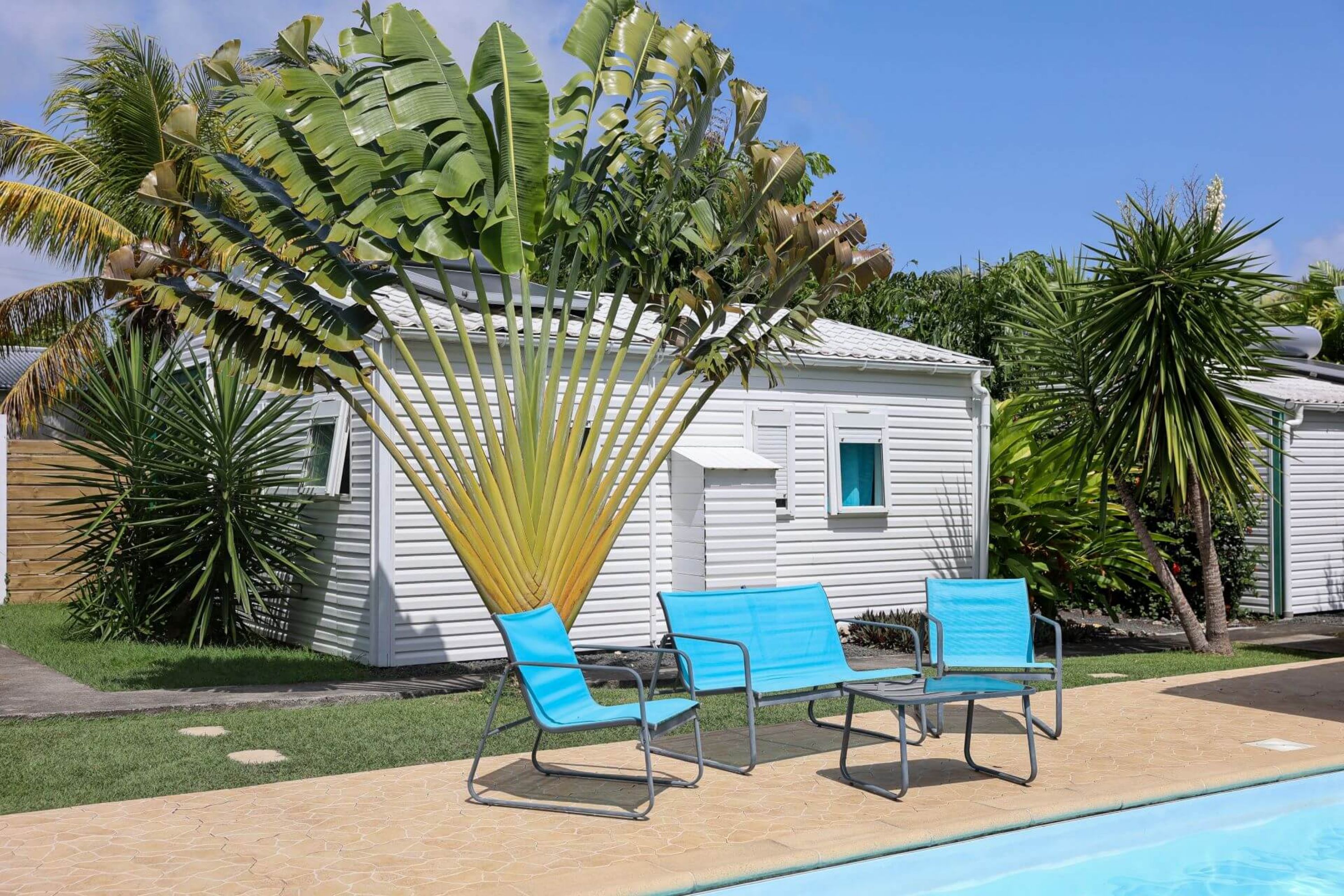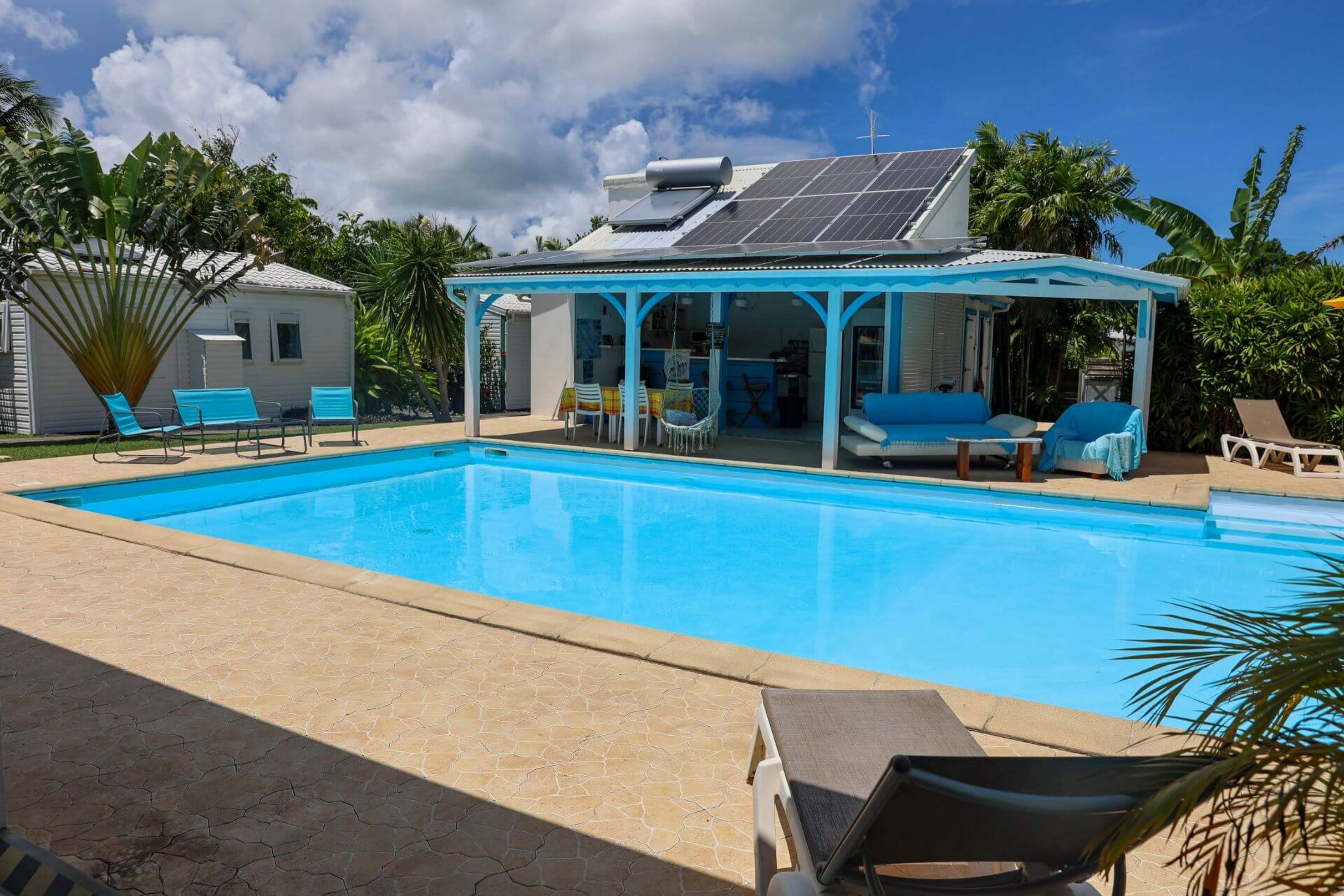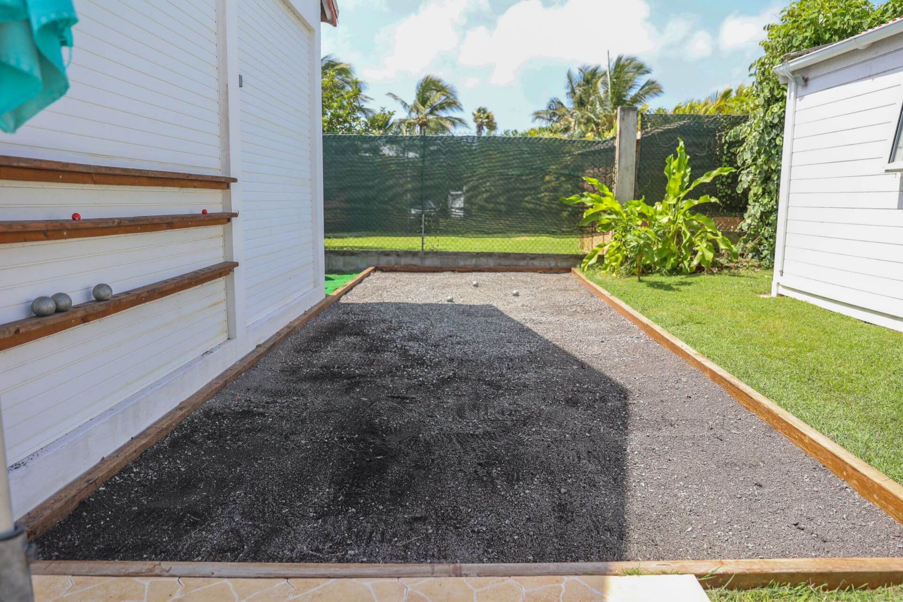 Côté extérieur, chaque hébergement dispose d'une terrasse et d'un jardin avec barbecue et mobilier, au milieu de plants et d'arbres exotiques dans une ambiance créole. A disposition des résidents : salle de jeux, piscine privée, terrain de pétanque.