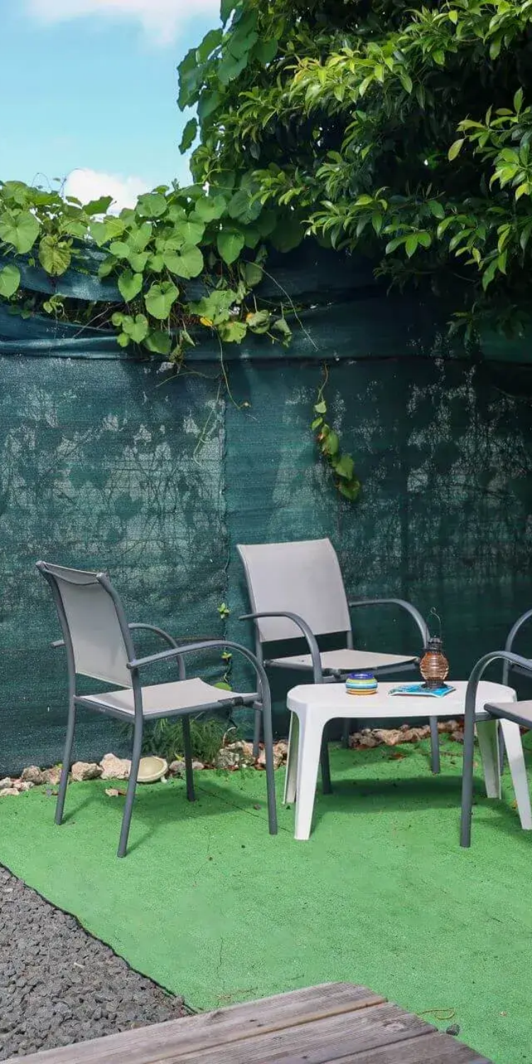 ✓ terrasse avec vue sur jardin (barbecue, salon de jardin, etc.)